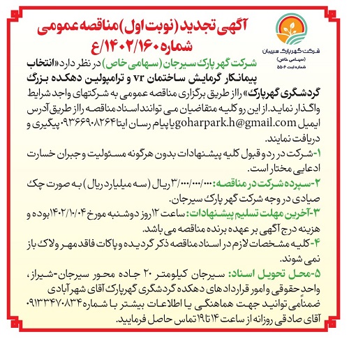 آگهی تجدید مناقصه عمومی شماره 1402/160/ع