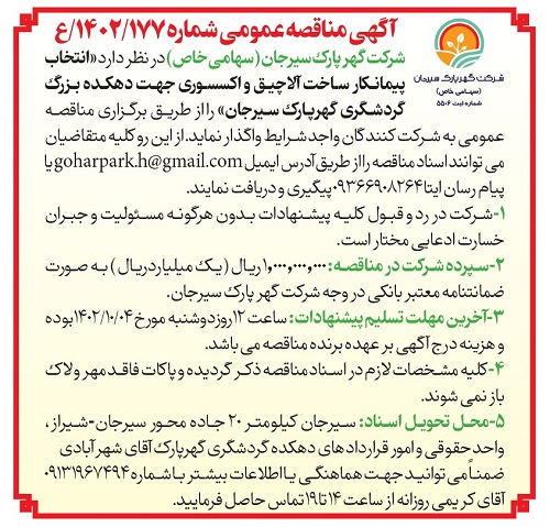 آگهی مناقصه عمومی شماره 1402/177/ع