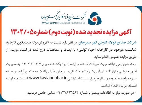 آگهی مزایده عمومی شرکت کاویان گهر