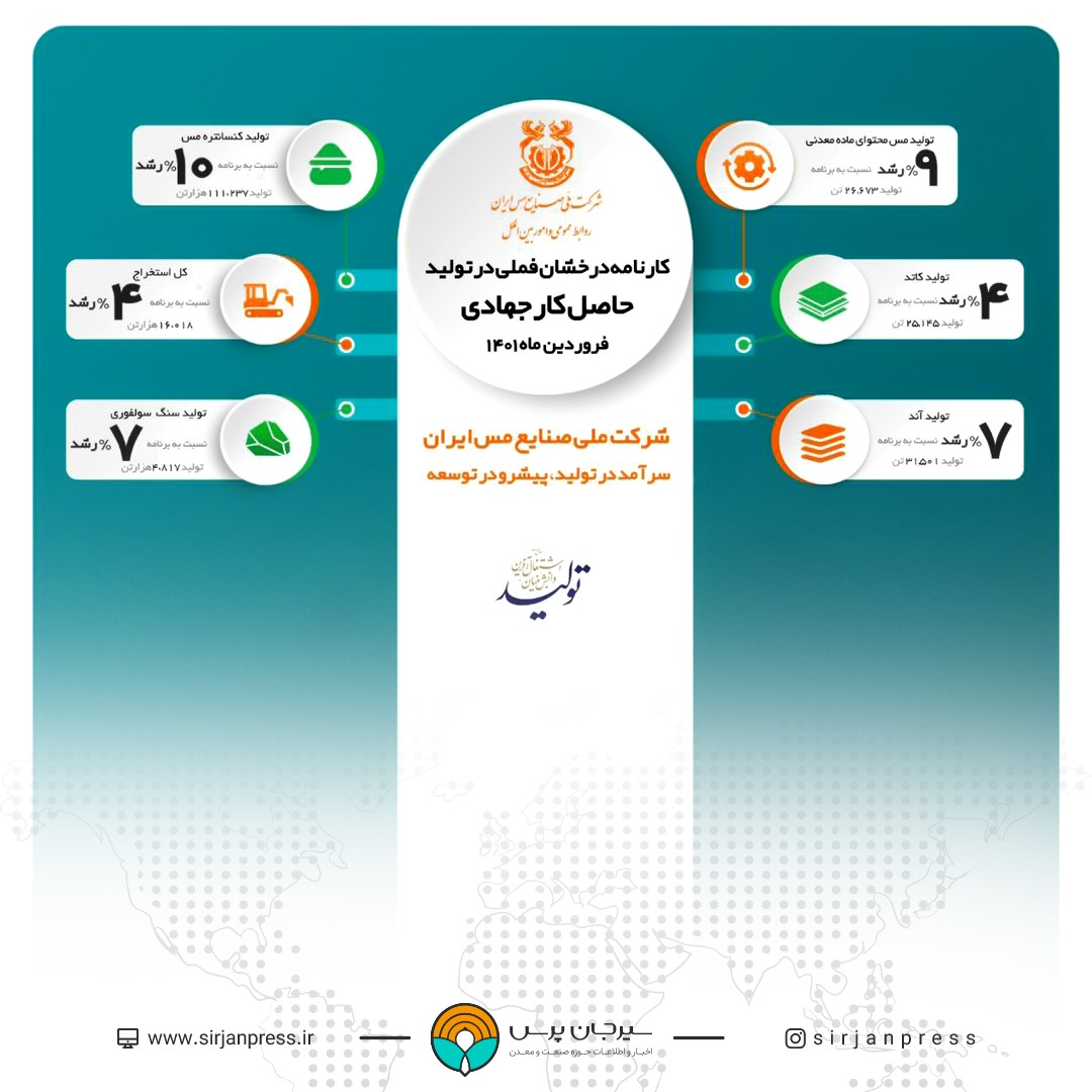 مدیرعامل شرکت ملی صنایع مس ایران با اشاره به کارنامه تولیدی فروردین ماه سال جاری، گفت: همت و تلاش جهادی پرسنل شرکت مس باعث شد تا بتوانیم رکوردهای قابل توجهی را در زمینه تولید مس کاتد، کنسانتره مس و اسید سولفوریک به ثبت برسانیم.