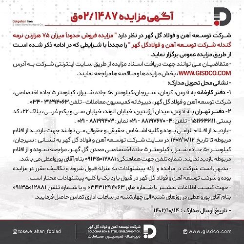 آگهی شرکت توسعه آهن وفولاد گل گهر